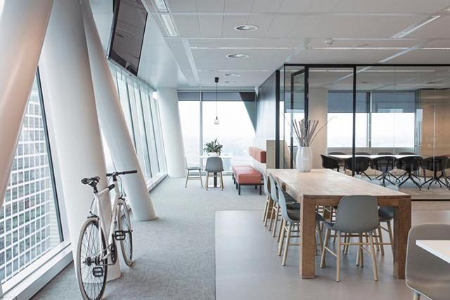 办公室装修设计围绕着开放空间的概念。工作区不使用封闭的房间,而是使用小隔断,为员工提供了足够的私密性,允许他们拥有自己专属的领域,让他们享受个人空间的放松。这样沟通更容易,让团队更有归属感。在业务运营